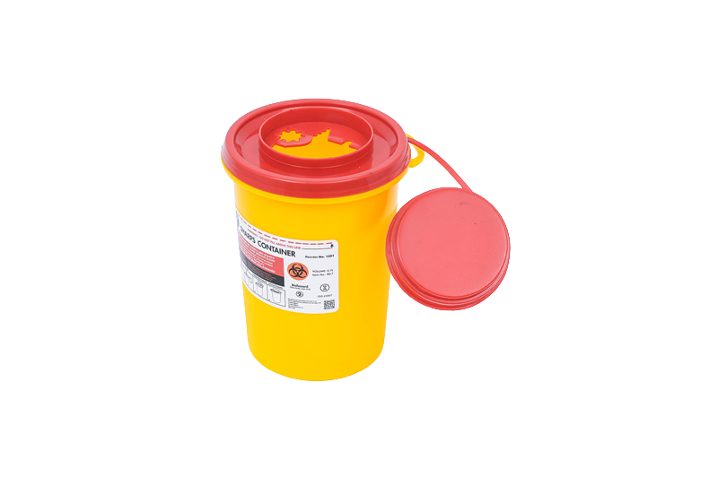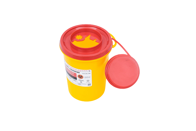 Disposable container designed for the collection of sharps waste. Dual access opening allows for separate needle break and syringe disposal. This product is available as single containers or as cases of 100 containers.