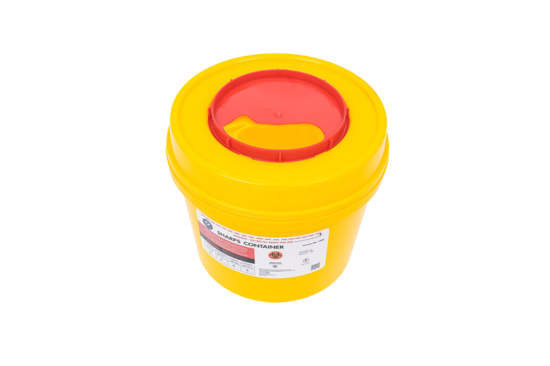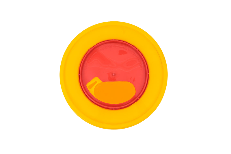 Disposable container designed for the collection of sharps waste. Dual access opening allows for separate needle break and syringe disposal. This product is available as single containers or as cases of 100 containers.